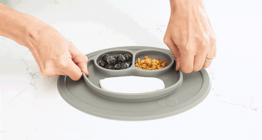 • Stable base promotes self-feeding and develops fine motor skills